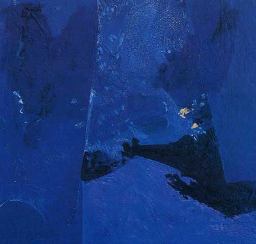 | "Scenario" 1998 80x100 cm In un mare (o piuttosto un cielo o un cosmo) la materia si mostra come caos in apparente equilibrio. E' un mondo lucreziano, in cui basta la più piccola fluttuazione, la più piccola luce, in un luogo minimo lontano dall'equilibrio, per attrarre il turbine o la vita. Felice Marotta, 2001 Opera Successiva |
